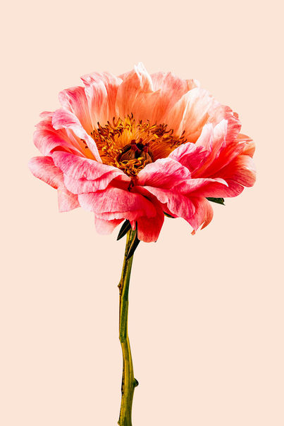 Chaque image est issue d’un processus précis : les fleurs sont d’abord photographiées puis minutieusement détourées dans Photoshop avant d’être replacées sur un fond neutre. Ce choix n’est pas un simple parti pris esthétique : il s’agit d’un moyen de suspendre le sujet hors de son environnement pour mieux en révéler l’essence. Privées de contexte, les fleurs dévoilent des détails souvent imperceptibles — textures délicates, courbes subtiles, nuances de couleurs, tensions graphiques. Elles deviennent alors presque sculpturales, comme des études visuelles concentrées.